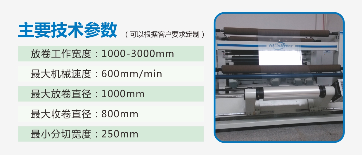 為滿足市場需求,我司設(shè)計(jì)研發(fā)了這款可分切2-6米不等材料幅寬的大型分切機(jī),可適用于 BOPP/OPP/CPP/PET/PE/PVC紙張等寬幅材料的分切。